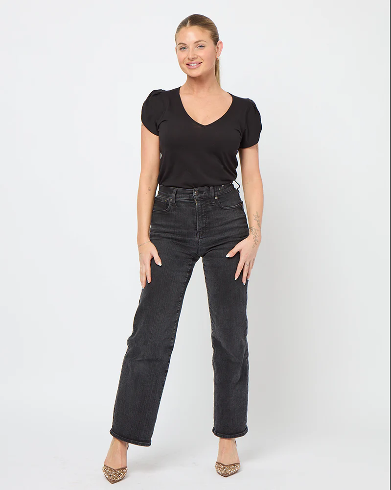 The perfect v-neck designed for DD+ cups: not too low, not too high, but just enough to leave a little mystery. Tailored to accommodate your chest with tulip puff sleeves for a feminine flair. Versatile to wear to work, on weekends with jeans or to work out.