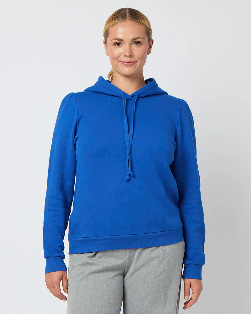 A cozy sweatshirt fit to flatter DD+ cups with a lower neckline (don't you hate it when hoodies choke?), slim body and puff shoulders proportionate to accentuate your femininity. Hidden side pocket for a key or a lipstick on-the-go. Perfect for day or night. Finally, a sweatshirt that doesn't make us look bigger than we are!