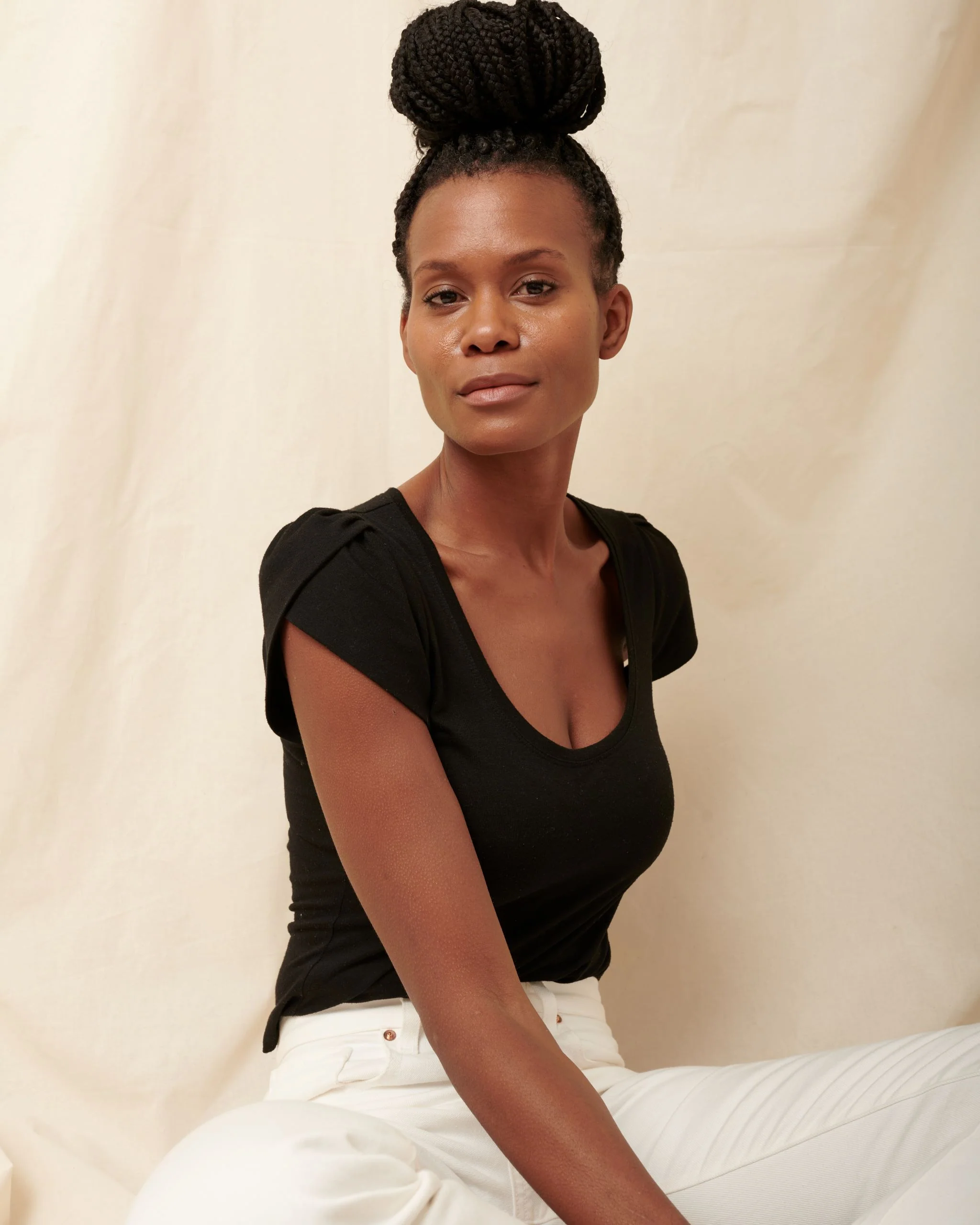The perfect scoop neckline that accentuates your collar bone and grazes above your chest. Not too low, not too high, but just right. Subtle tulip puff sleeves for a feminine, flirty flair. Versatile for work or a date night.